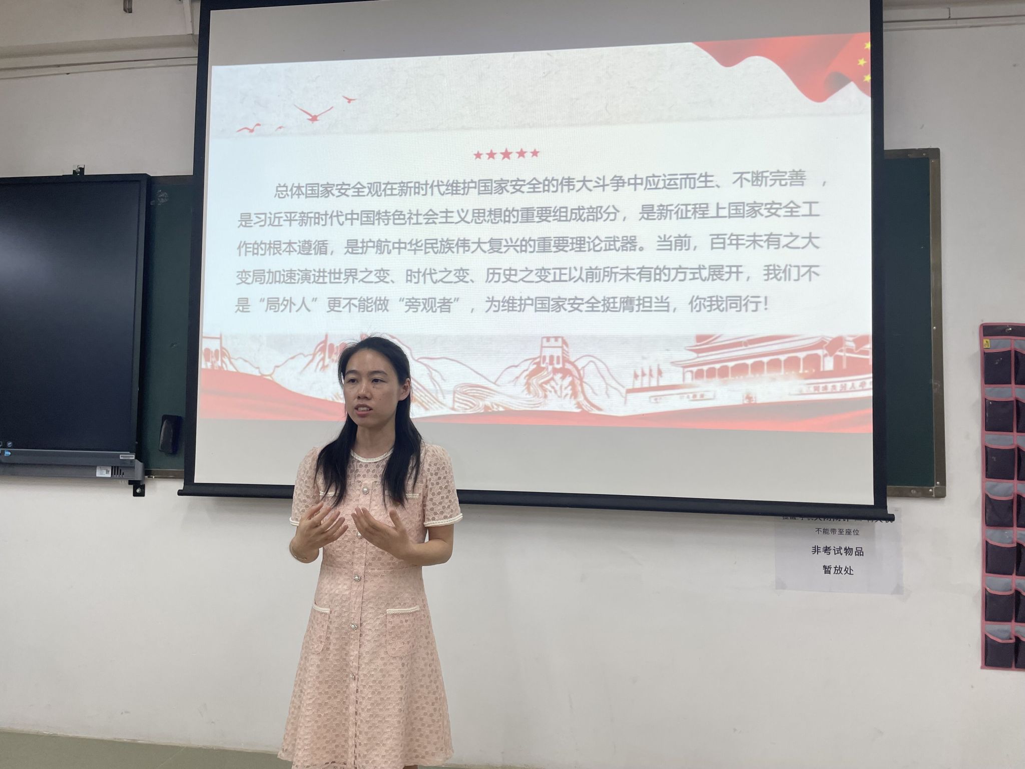 会上,纪检委员张佳佳领学国家安全相关知识,从“国家安全的基本知识”“危害国家安全行为及相关法条内容”“总体国家安全观 创新引领10周年”“如何维护国家安全”四个方面展开讲述。同志们共同观看国家安全教育相关视频、详实周密的资料和典型案例,警醒着同志们一定不要触碰法律红线。作为一个合格的中国公民应保守国家秘密,共同守护国家安全,对危害国家安全的事情坚决说“不”。