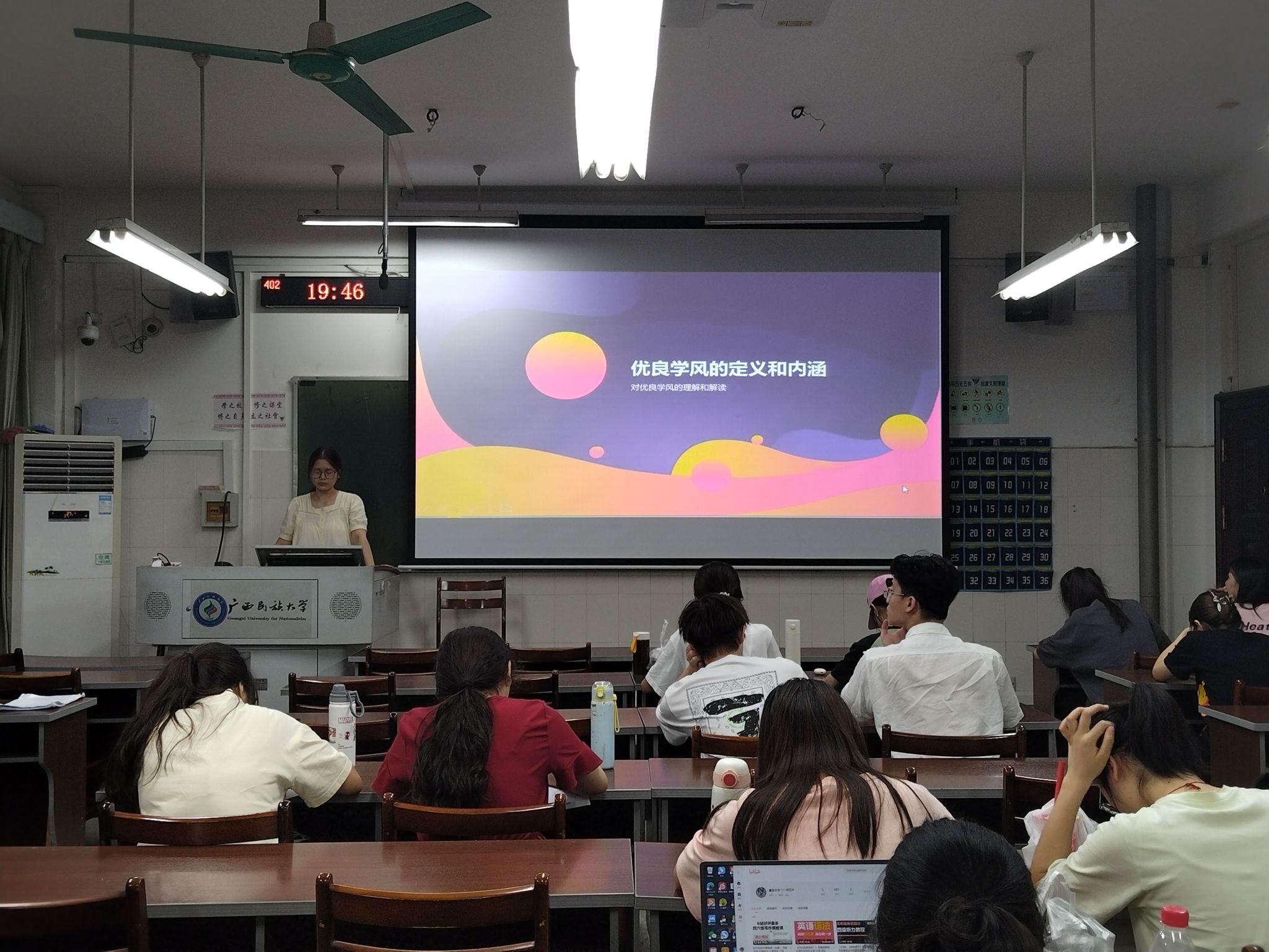 会议伊始,潘媛为同学们详细介绍了优良学风的内涵价值。同时,潘媛还详细讲解了员工在学风建设中的角色和责任,鼓励同学们积极参与到优良学风的创建中来。班会现场,同学们展开了热烈的讨论,就如何营造优良学风发表了各自的看法。